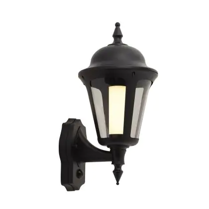 Beschrijving Ansell LED Wandlamp Latina Lantaarn Zwart - Geschikt voor E27 tot 42W | IP65 - Bewegings- en lichtsensor