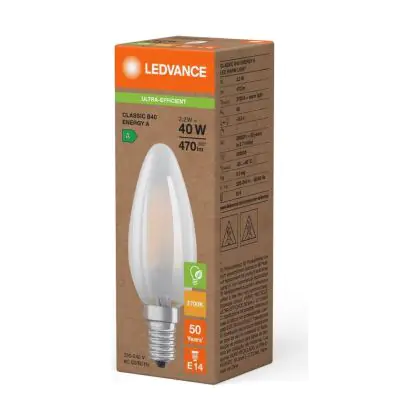 Beschrijving Ledvance LED Classic E14 Kaars Filament Mat 2.2W 470lm - 827 Zeer Warm Wit | Vervangt 40W