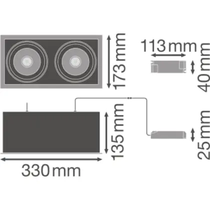 Beschrijving Ledvance LED Spot Vierkant Multi Kantelbaar Zwart-Wit 2x30W 5400lm 38D - 840 Koel Wit | Zaagmaat 320x160mm
