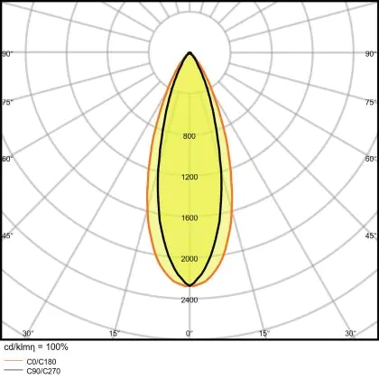 De lichtopbrengst en de gradenbundel spelen een grote rol. Zo geeft de lichtopbrengst van 5400 Lumen in combinatie met de 38° stralingshoek deze inbouwspot een specifieke toepassing. Kort samengevat is een lichtintensiteit van maximaal 400 Lumen ideaal voor accentverlichting, terwijl hogere waardes goed gebruikt kunnen worden als basisverlichting. Over het algemeen geldt: hoe breder de gradenbundel, hoe geschikter deze is door basisverlichting. Dit komt doordat het licht over een groter oppervlak wordt verspreid. Smallere gradenbundels (tot 40°) kunnen echter bij hoge plafonds ook goed tot hun recht komen als algemene verlichting.