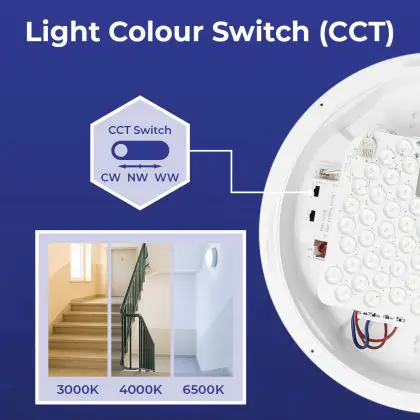 Denk ook goed na over de plaats waar je jouw nieuwe LED plafondverlichting wil ophangen, in combinatie met de juiste kleurtemperatuur. Zo geven 2700 Kelvin (extra warm wit) en 3000 Kelvin (warm wit) wat zachter en aangenamer licht. Deze tint is daarom goed geschikt voor gezellige buitenplaatsen of algemene ruimtes zoals een gang, lift, hal of overloop. 4000 Kelvin (koel wit) oogt qua tint wat feller en frisser en is daarom niet echt geschikt als sfeerverlichting, maar vooral als functionele verlichting. Denk daarbij aan vergaderzalen, gymzalen, werkkamers etc. Deze LED plafondlamp heeft als kleurtemperatuur: . Wist je dat het online kopen van LED plafondlampen bij Lampdirect als zakelijke klant extra voordelen met zich meebrengt? Lees er hier alles over.