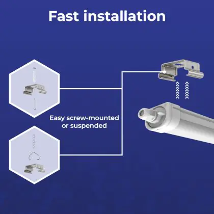 Een belangrijk element van LED montagebalken is de IP waarde. Dit geeft aan in hoeverre een product stof- en waterdicht is. IP44 betekent dat een armatuur spatwaterdicht is en vanaf IP65 is een LED armatuur volledig stof- en waterdicht. De IP waarde van deze LED montagebalk is: IP65 - Stof- en Waterdicht. Wanneer een LED montagebalk volledig waterdicht is, kun je deze perfect gebruiken voor ruimtes waar het vochtig kan worden of neerslag valt, zoals stallen, loodsen, kelders, parkeergarages en buitenplaatsen. Wil je meer weten over de IP waarde? Klik dan hier om onze blog te lezen.