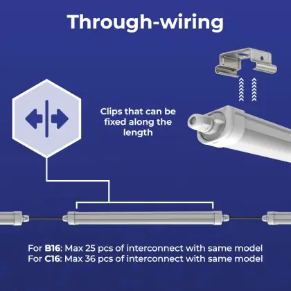 Een belangrijk element van LED montagebalken is de IP waarde. Dit geeft aan in hoeverre een product stof- en waterdicht is. IP44 betekent dat een armatuur spatwaterdicht is en vanaf IP65 is een LED armatuur volledig stof- en waterdicht. De IP waarde van deze LED montagebalk is: IP65 - Stof- en Waterdicht. Wanneer een LED montagebalk volledig waterdicht is, kun je deze perfect gebruiken voor ruimtes waar het vochtig kan worden of neerslag valt, zoals stallen, loodsen, kelders, parkeergarages en buitenplaatsen. Wil je meer weten over de IP waarde? Klik dan hier om onze blog te lezen.