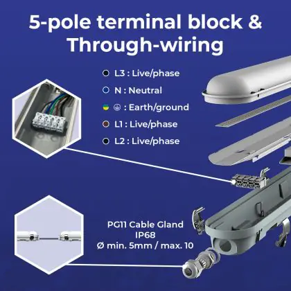 Een belangrijk element van LED montagebalken is de IP waarde. Dit geeft aan in hoeverre een product stof- en waterdicht is. IP44 betekent dat een armatuur spatwaterdicht is en vanaf IP65 is een LED armatuur volledig stof- en waterdicht. De IP waarde van deze LED montagebalk is: IP65 - Stof- en Waterdicht. Wanneer een LED montagebalk volledig waterdicht is, kun je deze perfect gebruiken voor ruimtes waar het vochtig kan worden of neerslag valt, zoals stallen, loodsen, kelders, parkeergarages en buitenplaatsen. Wil je meer weten over de IP waarde? Klik dan hier om onze blog te lezen.